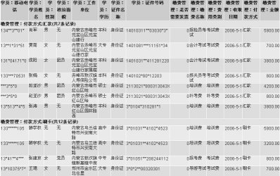 點擊單個學員查看頁面的相關列表,直接添加其他考務信息。張小玲是報名人力資源三級和文秘三級的學員,人力三級學習需要代辦考試。繳納人力培訓費3000元,文秘培訓2000元,報名人力資源管理師考試費500元。
