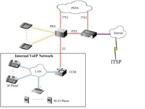 iBG3026,最后在PBX和Ubigate iBG3026之間再開通4條E1中繼,同時(shí),Ubigate iBG3026通過自帶的GE接口接入酒店的辦公局域網(wǎng),這樣即使出現(xiàn)客房人員使用網(wǎng)絡(luò)不規(guī)范的情況發(fā)生,也不會(huì)影響語音服務(wù)的質(zhì)量。