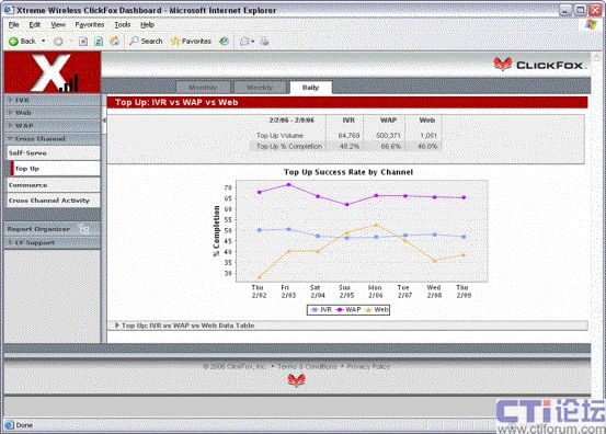 Clickfox 是唯一的一項(xiàng)技術(shù),它可以真正向你顯示當(dāng)客戶與您的自助服務(wù)系統(tǒng)進(jìn)行互動(dòng)時(shí),你的客戶到底發(fā)生了什么事情。是IVR、WEB、混亂或以上的組合。明確問題所在,有針對(duì)性地進(jìn)行改進(jìn),其結(jié)果是大量成本的節(jié)省、增強(qiáng)的創(chuàng)收能力和改進(jìn)的客戶滿意度。