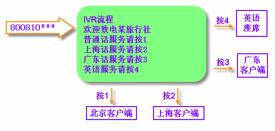 當客戶撥打電話進入MVB2000系統(tǒng)平臺的呼叫中心。通過IVR導航,可隨意打到各地的客戶端,再通過客戶端進行更加細致的分類。并且,每個客戶端都可以互相轉接。IVR流程可以無限下拉菜單。