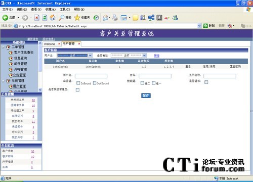 系統(tǒng)配置管理為管理員提供了一個管理的平臺,來對系統(tǒng)的用戶、數(shù)據(jù)、參數(shù)、類型等進行靈活的配置,從而適應(yīng)快速變化的業(yè)務(wù)需求。系統(tǒng)用戶管理包括座席人員賬號的設(shè)置、座席組的指定、座席技能的管理以及權(quán)限的分配等。