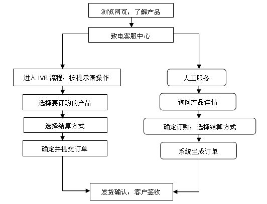 顧客的電話訂購主要有兩種方式:一種方式為在購物平臺400或800電話的IVR流程中根據(jù)提示語音來完成訂購過程;另一種方式為人工服務(wù),客服人員幫助顧客完成訂購過程。