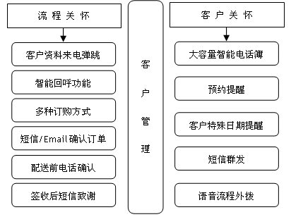 可與企業(yè)既有的800或400電話相結(jié)合,包含1至16個(gè)客服人員坐席設(shè)置,主要處理實(shí)時(shí)的產(chǎn)品售前售后咨詢、電話訂單受理等呼入類業(yè)務(wù),也能滿足以外撥為主的客戶關(guān)懷需求;同時(shí),客服人員能夠通過系統(tǒng)隨時(shí)了解各種商品庫存情況,以便對網(wǎng)上交易提供及時(shí)有效的服務(wù)。來電彈跳客戶資料中必須顯示出客戶的歷史消費(fèi)詳細(xì)信息,以及正在進(jìn)行中的交易詳情。