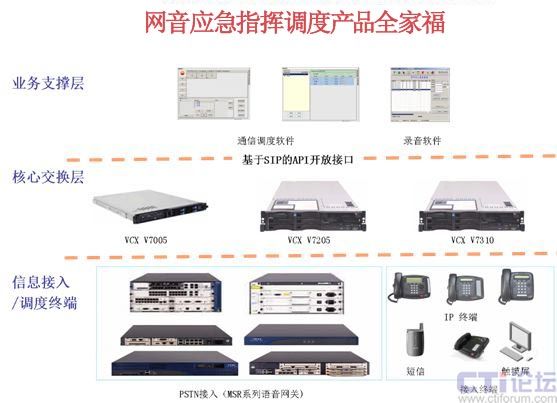 “呼叫控制層”指應(yīng)用解決方案的核心組件-軟交換平臺VCX V7000,VCX V7000特點如下: