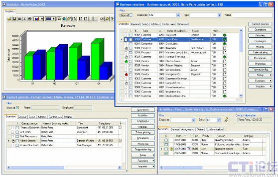 銷售和市場(chǎng)管理能夠在一個(gè)位置上收集企業(yè)的所有商務(wù)信息,通過(guò)結(jié)構(gòu)化方式對(duì)其進(jìn)行組織并使其隨時(shí)處于可用狀態(tài)。這種產(chǎn)品為企業(yè)提供了確定客戶需求以及優(yōu)化銷售與推廣決策所必需的洞察力。系統(tǒng)允許企業(yè)高效共享來(lái)自商務(wù)關(guān)系中各個(gè)方面的信息,并使每一名員工都成為真正的客戶專家。