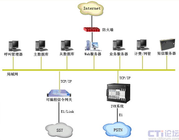 可編程信令網(wǎng)關(guān): 通過E1接入SS7信令網(wǎng),專門負責(zé)七號信令的處理;