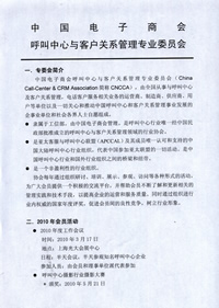 中國電子商會(huì)呼叫中心與客戶關(guān)系管理專業(yè)委員會(huì)(China Call-Center & CRM Association簡稱CNCCA),由全國從事與呼叫中心及客戶關(guān)系管理,電話客戶服務(wù)相關(guān)業(yè)務(wù)的運(yùn)營商、制造商、供應(yīng)商、用戶等單位以及一切關(guān)心和推動(dòng)中國呼叫中心和客戶關(guān)系管理事業(yè)發(fā)展的企事業(yè)單位和社會(huì)各界人士自愿組成。
