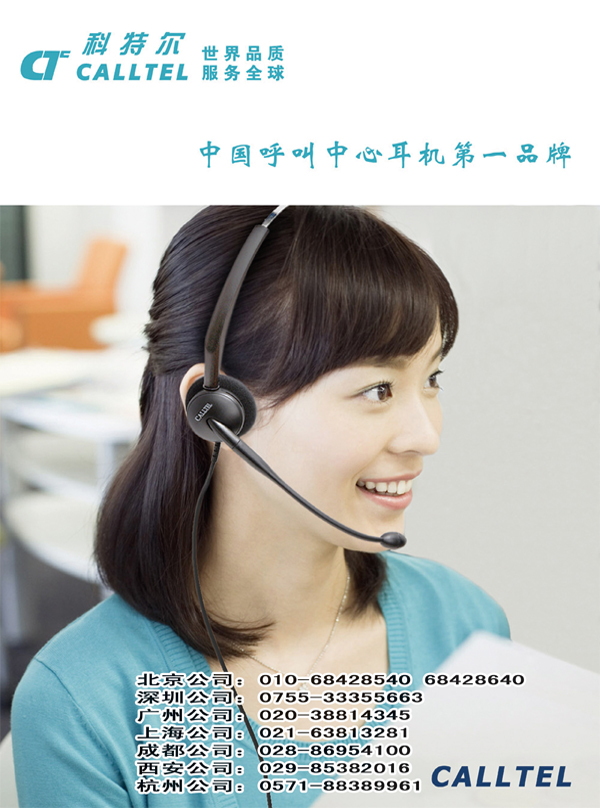 泰訊通訊集團(tuán)公司(北京、廣州、上海、成都、西安)屬下的CALLTEL科特爾品牌,始創(chuàng)于2000年,生產(chǎn)基地位于廣東省東莞市,目前是中國(guó)呼叫中心耳機(jī)行業(yè)的第一品牌,在以下領(lǐng)域取得了中國(guó)乃至全球領(lǐng)先的市場(chǎng)地位。2005年-2009年,CALLTEL連續(xù)五年保持中國(guó)銷量第一的優(yōu)勢(shì),開創(chuàng)了國(guó)產(chǎn)耳機(jī)占據(jù)市場(chǎng)主導(dǎo)地位的新紀(jì)元,在中國(guó)呼叫中心耳機(jī)發(fā)展史上樹立起一座新的里程碑,CALLTEL從而毫無爭(zhēng)議地成為中國(guó)呼叫中心耳機(jī)行業(yè)的第一品牌。