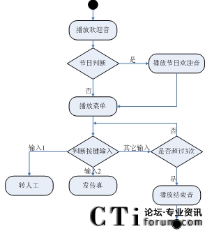| 方案三 | 1. 判斷是否節(jié)日 2. 如果是重大節(jié)日,播放節(jié)日歡迎音樂(lè),不是則播放默認(rèn)音樂(lè) 3. 播放3級(jí)語(yǔ)音菜單,接收用戶(hù)按鍵 |