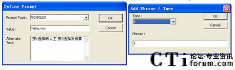 圖5.6 菜單節(jié)點(diǎn)放音文件和按鍵配置對(duì)話(huà)框圖