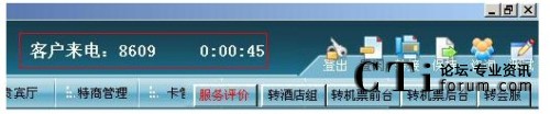 實(shí)時(shí)顯示呼叫時(shí)長(zhǎng)和客戶來(lái)電號(hào)碼,并且顯示了常用的轉(zhuǎn)接業(yè)務(wù)組和軟電話可操作模塊。