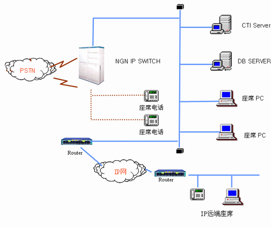 基于深圳某網(wǎng)絡(luò)購(gòu)物呼叫中心的需求特點(diǎn),HXD IP Switch擁有自己的CTI、IVR、錄音等核心功能,這些核心功能都由HXD公司提供,支持IP分布式坐席。單板平滑升級(jí)擴(kuò)容,交換機(jī)擁有電信級(jí)別的穩(wěn)定性,基本業(yè)務(wù)托管功能,能在應(yīng)用程序的PC down機(jī)的情況下進(jìn)行基本業(yè)務(wù)功能(例如電話接聽等)。這一功能為企業(yè)的服務(wù)形象提供了有力保障。