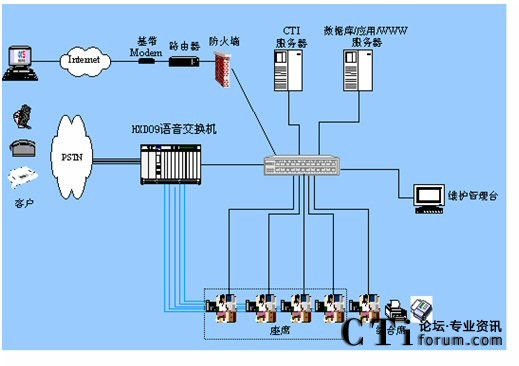 提供中國一號(hào)、七號(hào)信令、模擬、T1、IP等多種信令接入方式,具有呼入、呼出功能,負(fù)責(zé)向用戶播放服務(wù)用語、語音通知、呼叫引導(dǎo)用語、合成語音等,并具有錄音、監(jiān)聽、發(fā)送傳真、接收傳真等功能,處理接入電話與人工坐席的連接、來話轉(zhuǎn)移、保留、坐席呼出等功能,用戶與人工坐席的通話過程可實(shí)現(xiàn)全程錄音。在市場(chǎng)眾多品牌的交換機(jī)中,本系統(tǒng)選用的HXD09語音交換機(jī)具有先進(jìn)的技術(shù)特點(diǎn)、極高的性價(jià)比,滿足了在本系統(tǒng)構(gòu)建的需求。其主要優(yōu)點(diǎn)是:
