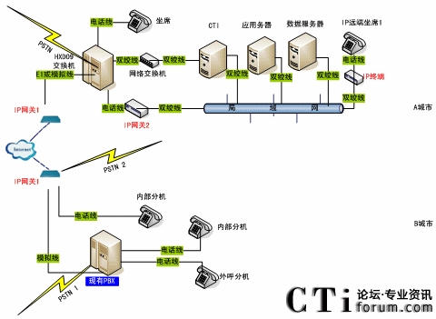 在這樣的背景下,我公司結(jié)合自身CTI設(shè)備優(yōu)勢(shì),進(jìn)一步融入先進(jìn)的VOIP技術(shù),以實(shí)現(xiàn)各種用戶語音建設(shè)及網(wǎng)絡(luò)建設(shè)的需求。以下就我公司VOIP語音解決方案進(jìn)行簡(jiǎn)單介紹,敬請(qǐng)有關(guān)專家、讀者批評(píng)指正。
