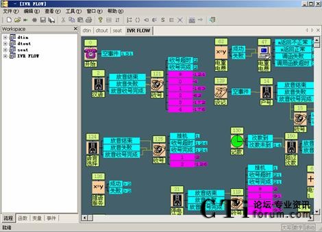 根據(jù)對(duì)客戶(hù)應(yīng)用系統(tǒng)的需求分析,列出您需要的提示音、信號(hào)音、函數(shù)以及變量,并且用流程生成器生成相應(yīng)的提示音表、信號(hào)音表、函數(shù)表和和變量表。這些表在應(yīng)用系統(tǒng)運(yùn)行過(guò)程中為CTISERVER 程序提供正確的信息。