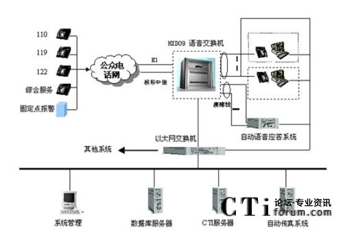 該系統(tǒng)主要分為電信子系統(tǒng)(完成聯(lián)動中心與各電信公司之間話音的傳輸、交換和分配,以及主叫號碼和主叫地址的自動查詢和傳輸?shù)龋、接警中心子系統(tǒng)(統(tǒng)一接聽和處理市民的報警、求助電話)、指揮調(diào)度子系統(tǒng)(或稱為處警中心,通過直觀的地理信息系統(tǒng)和數(shù)據(jù)庫,可以對所有的資源和警力分布了如指掌。通過一體化的無線數(shù)據(jù)傳輸和無線調(diào)度臺進(jìn)行方便的統(tǒng)一管理,指揮和調(diào)度)、信息網(wǎng)絡(luò)子系統(tǒng)(聯(lián)動中心的骨干網(wǎng)絡(luò),把各種數(shù)據(jù)數(shù)庫、接處警席位、移動的警用車載計(jì)算機(jī)等互聯(lián)在一起,形成一個強(qiáng)大的信息網(wǎng)絡(luò))、無線指揮調(diào)度通信子系統(tǒng)、大屏幕顯示子系統(tǒng)、地理信息子系統(tǒng)、GPS/GIS子系統(tǒng)。