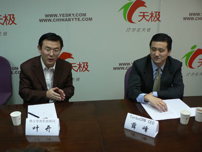 主持人:剖析行業(yè)發(fā)展趨勢(shì),體察企業(yè)e化需求,各位網(wǎng)友下午好,感謝大家關(guān)注本期的e領(lǐng)袖對(duì)話。自2002年開始,CRM在中國取得了快速的發(fā)展,但在人們欣慰的同時(shí)還有一個(gè)現(xiàn)實(shí)讓CRM的概念可能人盡皆知,但CRM的理念卻遠(yuǎn)沒有深入人心。另外,最近一頓時(shí)間,在領(lǐng)域內(nèi)舉足輕重人物的言行以及一些知名CRM企業(yè)的變數(shù),讓人們對(duì)CRM的未來有了各種各樣的猜測(cè)和顧慮。那么CRM到底會(huì)有一個(gè)什么樣的未來,CRM為會(huì)帶給中國的企業(yè)用戶一個(gè)什么樣的未來,今天我們對(duì)話請(qǐng)到的是在CRM領(lǐng)域相當(dāng)資深的兩位嘉賓,看看他們會(huì)給我們一個(gè)什么樣的答案。今天這個(gè)話題引起了網(wǎng)友濃厚的興趣,在進(jìn)來之前很多網(wǎng)友已經(jīng)提出了問題,今天會(huì)把網(wǎng)友的問題結(jié)合我們?cè)掝}一起進(jìn)行,請(qǐng)大家隨時(shí)關(guān)注,首先介紹一下今天來到對(duì)話的兩位嘉賓。一位是TurboCRMCEO薛峰。這位是獨(dú)立咨詢實(shí)施顧問葉開老師。首先歡迎兩位到來,今天話題可能跟之前不同,之前會(huì)了我們?cè)掝},隨后結(jié)合我們網(wǎng)友問題來聊。但是今天網(wǎng)友的問題和今天的主題比較切合,所以就網(wǎng)友問題和我們?cè)掝}結(jié)合起來進(jìn)行,今天把首發(fā)交給網(wǎng)友,Turbo算是國內(nèi)最大的嗎?先請(qǐng)葉老師回答一下。