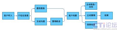 在上面的流程中,將一次客戶接觸,轉(zhuǎn)變?yōu)橐淮稳娴目蛻艋訖C(jī)會,通過對客戶信息360度的洞察和客戶的互動溝通,在為客戶提供基本服務(wù)的同時,根據(jù)客戶的基本資料、歷史消費數(shù)據(jù)等,挖掘客戶的隱性需求,從而有選擇的開展客戶關(guān)懷、客戶信息收集、客戶維系、主動營銷活動。下面以一個電信運營商的客戶呼入流程為例,說明在一個以客戶為中心的客戶接觸流程中,坐席代表可以開展的客戶接觸活動(圖4)。