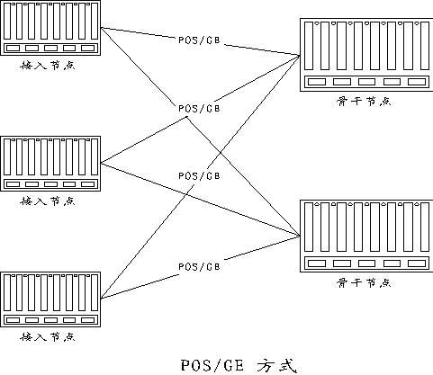 北京電信公眾IP網的接入節(jié)點與骨干節(jié)點之間的連接根據(jù)線路和帶寬的要求采用Packet Over SDH和千兆位以太網技術。