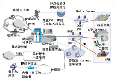 E號(hào)通第一期32座席,集中為全國用戶提供服務(wù),以內(nèi)置在排隊(duì)機(jī)的IP網(wǎng)關(guān)為中心搭建的IP語音網(wǎng)解決異地接入問題,節(jié)省了帶寬,降低了運(yùn)營費(fèi)用。WECC(Web集成呼叫中心)為網(wǎng)上交易用戶提供多種交互方式:IP點(diǎn)擊通話、文字交談、護(hù)航瀏覽等,解決了在線服務(wù)問題;強(qiáng)大的呼出功能模塊,提供了定制和主動(dòng)式服務(wù);同時(shí),內(nèi)置在排隊(duì)機(jī)內(nèi)部的IVR,語音質(zhì)量完美,響應(yīng)速度快。該方案大規(guī)模的集中接入整合了資源,方便了管理,可平滑擴(kuò)展至3萬中繼以上。E號(hào)通是國通證券系統(tǒng)內(nèi)外資源的一次大規(guī)模、高層次的有效整合。首先它整合了營業(yè)部分散的資源,將多種媒體的接入集中到中心,在股民享受更高層次和便捷的服務(wù)同時(shí),券商自身也降低了運(yùn)營及管理成本。其次國通通過E號(hào)通整合了國通在市場(chǎng)研究、行業(yè)研究 、經(jīng)紀(jì)業(yè)務(wù)、投行業(yè)務(wù)、電子商務(wù)等領(lǐng)域的優(yōu)勢(shì)資源,以及與銀行合作帶來的外部資源,形成了具有國通特色的、集證券、銀行多種個(gè)性化服務(wù)內(nèi)容于一身金融服務(wù)“超市”。