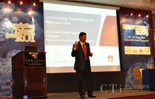 本次CCAS Symposium 2009的主題為“Translating talent into ROI”,著重探討在目前金融危機的陰霾下,如何通過精細化的運營管理,將人力資源或人才轉換成實實在在的投資回報率。華為資深專家Louis”做了”Leveraging