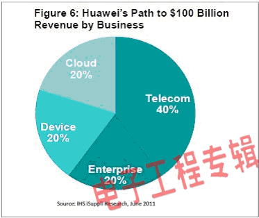 為了實(shí)現(xiàn)下一個成長目標(biāo),華為將專注于企業(yè)、設(shè)備和云計(jì)算等領(lǐng)域中的新機(jī)會。到2020年,上述每個領(lǐng)域都將占該公司營業(yè)收入的20%,合計(jì)占60%。其余40%營業(yè)收入將來自該公司的傳統(tǒng)電信設(shè)備業(yè)務(wù)。