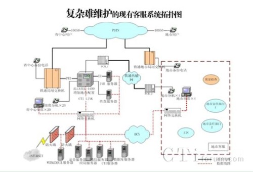 中國鐵通10050客戶服務中心,自2002年全國各省建設(shè)完畢后,一直為鐵通的用戶提供各種業(yè)務咨詢、故障處理及投訴申告服務。隨著鐵通用戶數(shù)量的不斷激增,鐵通目前的10050客服中心系統(tǒng)從技術(shù)架構(gòu)、規(guī)模、功能上均無法滿足市場服務需求,所用的各種核心設(shè)備也基本停產(chǎn),造成了很大的維護難題。