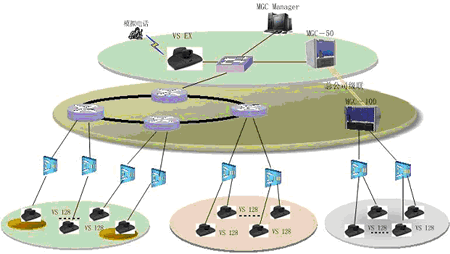一般來說,在省公司同時參與會議的人數(shù)較多,考慮配置比較大的系統(tǒng),由某一領(lǐng)導(dǎo)召集一些相關(guān)成員在此開會;在地市公司同時參與會議的人數(shù)較少,只是一些主要領(lǐng)導(dǎo)參加會議,考慮配置比較小的系統(tǒng);同時,為了實現(xiàn)終端之間管理和傳送音頻、視頻和數(shù)據(jù),需要MCU來協(xié)調(diào)終端的工作,并與上級MCU相級聯(lián),擴(kuò)大會議的規(guī)模。另外,可以增加一套T.120服務(wù)器,該系統(tǒng)是利用多媒體技術(shù)幫助使用者對工作中的各種信息進(jìn)行處理,如共享數(shù)據(jù)、共享應(yīng)用程序、實現(xiàn)文件的雙向傳輸?shù)龋瑥亩鴺?gòu)造出一個多人共享的工作空間。以及增加一套VOD系統(tǒng),它集視頻采集、點播、廣播于一體,這樣就可以將視頻會議的內(nèi)容實時的錄制到本地,也可將一些培訓(xùn)資料放在視頻點播里,便于對貴公司員工進(jìn)行培訓(xùn),還能通過視頻廣播的功能,讓使用PC機(jī)的人員不在會議室,便可以通過瀏覽器實時的看到和聽到正在召開的會議。