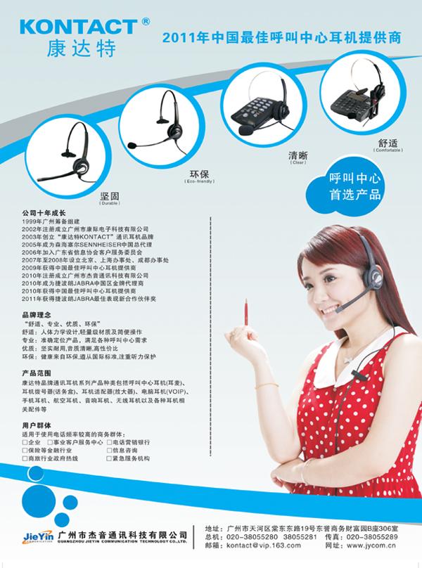 康達(dá)特通訊耳機(jī)產(chǎn)品主要應(yīng)用于企業(yè)和政府的客戶服務(wù)中心、電話營(yíng)銷(xiāo)中心、商務(wù)中心、緊急指揮中心、酒店總機(jī)等辦公場(chǎng)所,對(duì)于長(zhǎng)期從事電話營(yíng)銷(xiāo)、電話咨詢(xún)、商務(wù)調(diào)查等工作人員,是一件必不可少的通訊工具。