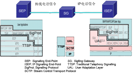 在九十年代末,IETF成立了信令傳輸(SIGTRAN)工作組來解決分組形式的電話信令在IP網(wǎng)絡(luò)上傳輸,確定電話信令的功能和性能要求,實現(xiàn)在IP網(wǎng)絡(luò)節(jié)點之間傳輸如SS7
