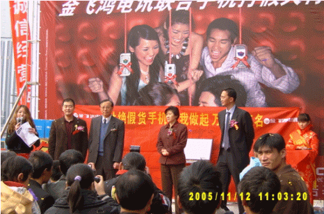 11月12日上午,賽迪呼叫中心與京城著名手機(jī)連鎖賣場(chǎng)--金飛鴻電訊聯(lián)手,在金飛鴻在首體店舉行"95121315手機(jī)防偽查詢熱線指定合作單位"揭牌儀式,在國家信息產(chǎn)業(yè)部的認(rèn)證下,成為京城首個(gè)"手機(jī)防偽查詢熱線指定合作單位",迎來了京城手機(jī)賣場(chǎng)打假維權(quán)的規(guī)范化時(shí)代。