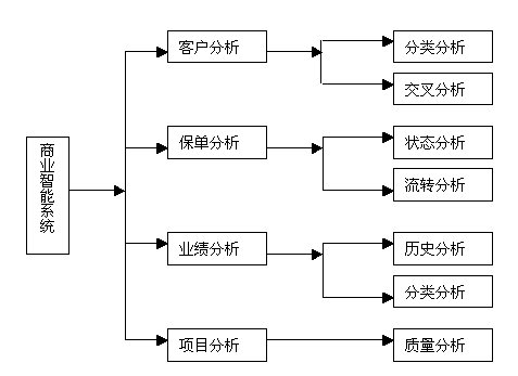 通過商業(yè)智能可以實現(xiàn)對客戶分析、保單分析、業(yè)績分析和項目分析等各項內(nèi)容進(jìn)行管理分析。它包含5個決策分析模型以及超過60種的商業(yè)智能分析報表,內(nèi)嵌式數(shù)據(jù)挖掘模型與決策分析報表為電話營銷管理人員提供了有力的分析工具,對于銷售管理起到了定量分析、定性決策的重要支撐作用,支持不同層次的管理者進(jìn)行不同范圍的決策。其系統(tǒng)架構(gòu)圖如下: