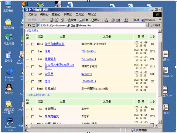 傳統(tǒng)郵件系統(tǒng)作為信息交換的手段在PC后的互聯(lián)網(wǎng)絡(luò)時(shí)代廣為運(yùn)用,但是,郵件系統(tǒng)一個(gè)大的缺點(diǎn)是離不開電腦。CTI技術(shù)技術(shù)通過傳統(tǒng)的電話網(wǎng)絡(luò)傳遞語(yǔ)音信息。電話網(wǎng)具有廣泛普及,人人使用這一特點(diǎn),這兩大技術(shù)的發(fā)展促使兩大技術(shù)的融合,那就是隨時(shí)隨地(anytime and anywhere)人們都可以通過電話,電腦使用郵件,訪問郵件。