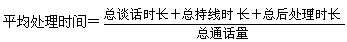 - 定義:是指某一統(tǒng)計時段內(nèi),座席與顧客談話時間、持線時間及事后處理與電話相關(guān)工作內(nèi)容的時間的總和除以總的通話量。