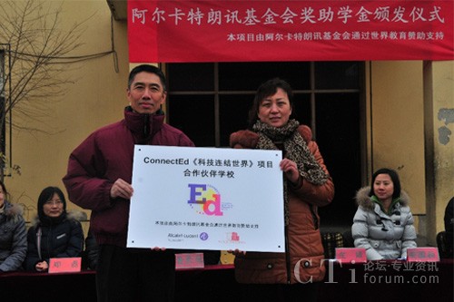 CTI論壇(ctiforum)3月6日消息(記者 浩宇):近日,法國阿爾卡特朗訊基金會(huì)(Alcatel-Lucent Foundation)與美國非營利組織世界教育(World Education)在北京市大興區(qū)農(nóng)民工子弟學(xué)!埡W(xué)校聯(lián)合舉辦公益助學(xué)活動(dòng),來自阿爾卡特朗訊中國旗艦企業(yè)——上海貝爾及世界教育的志愿者為45名貧困生、72名成績優(yōu)秀學(xué)生、244名成績進(jìn)步獎(jiǎng)獲得者共計(jì)361人發(fā)放獎(jiǎng)助學(xué)金和獎(jiǎng)狀。此次活動(dòng)是ConnectEd“科技連結(jié)世界”項(xiàng)目協(xié)助流動(dòng)青少年“透過科技擁抱世界”系列公益活動(dòng)的重要一站,ConnectEd “科技連結(jié)世界”項(xiàng)目由阿爾卡特朗訊基金會(huì)(Alcatel-Lucent Foundation)與世界教育(World Education)共同在全球推動(dòng)。作為志愿者之一,上海貝爾執(zhí)行副總裁、阿爾卡特朗訊中國區(qū)產(chǎn)品與研發(fā)負(fù)責(zé)人莊靖博士參與了此次活動(dòng),并為阿爾卡特朗訊ConnectEd項(xiàng)目合作校揭牌。雙方還在北京市昌平區(qū)新源學(xué)校舉行了公益助學(xué)活動(dòng),為45名貧困生、39名成績優(yōu)秀學(xué)生、52名成績進(jìn)步獎(jiǎng)獲得者共計(jì)136人發(fā)放獎(jiǎng)助學(xué)金。