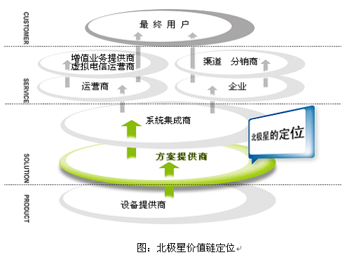 北極星軟件創(chuàng)建于1997年。作為專業(yè)的VoIP增值業(yè)務(wù)解決方案供應(yīng)商,北極星軟件秉承“溝通世界(Connecting the world)”的理念,致力于以新技術(shù)推動人和信息的溝通,為電信運營商、虛擬電信運營商、電信增值業(yè)務(wù)運營商和廣大中小企業(yè)提供電信級的VoIP增值方案!