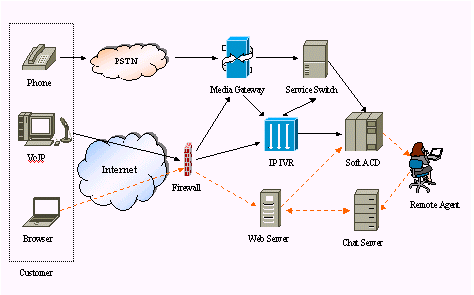 FineSupportIP Contact Center基于先進的LodeSoft iAfx體系架構,完全統(tǒng)一來自電話和Internet的客戶服務請求。來自PSTN的電話語音首先經(jīng)由媒體網(wǎng)關轉換為IP電話數(shù)據(jù)流,具有完全分布式特性,能夠幫助江蘇網(wǎng)通實現(xiàn)多點的、虛擬統(tǒng)一的客戶服務中心的目標;其基于VoIP技術的軟件ACD(自動呼叫分配器)根據(jù)呼叫類型、服務人員忙閑狀態(tài)、可定制的分配策略進行呼叫分配;基于Voice XML技術的IP-IVR單元,可以靈活地定義自動語音服務;系統(tǒng)另一顯著特點是系統(tǒng)遵循開放性原則,可集成第三方硬件和第三方業(yè)務軟件,使網(wǎng)通逐步實現(xiàn)統(tǒng)一、全面的客戶服務體系。