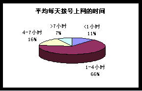 目前撥號(hào)上網(wǎng)用戶不在少數(shù),一定時(shí)期內(nèi)還仍是家庭用戶的主流。本次調(diào)查中“平均每天通過撥號(hào)上網(wǎng)、時(shí)間在1小時(shí)以上”的用戶占參與總量的90%以上。由于寬帶和ISDN的普及程度、安裝方便程度、費(fèi)用等多方面因素,撥號(hào)上網(wǎng)在一定時(shí)期內(nèi)不會(huì)被取代,普通用戶對(duì)寬帶和ISDN的認(rèn)識(shí)還較淡薄,另外從答卷用戶對(duì)“電話精靈”的歡迎程度以及實(shí)用性評(píng)價(jià)中,也反映出用戶并沒有感到撥號(hào)上網(wǎng)是會(huì)被很快淘汰的方式。