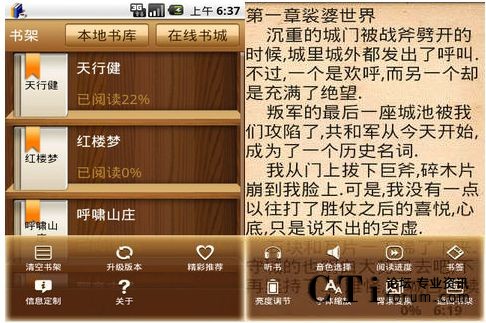 CTI論壇(ctiforum)9月14日消息(記者 潘婷婷): 聽書,在傳統(tǒng)意義上講是一定要親自去茶館、戲院等場所的,似乎只有閑情逸致的心情時才能進入聽書的狀態(tài)?涩F(xiàn)在生活節(jié)奏不斷加快,擁有這般雅興的人們只好心向往之,如今,人們更多的時間是在奔波的路上抑或是在家中短暫憩息做暫時?俊B吠局,手機早就成為我們連接、溝通的最佳拍檔,F(xiàn)在,手機已能兼顧多重功能,聽音樂、照相、攝像、游戲、上網(wǎng)、微博、還有看書,這些都可以在一部手機中來完成,那么,強大的手機功能是否還有什么創(chuàng)新的設(shè)計呢?捷通華聲公司想到了,它的語音合成技術(shù)(TTS)應(yīng)用,可以讓手機中的文字變成聲音讀給你聽!所以現(xiàn)在聽書已不再是傳統(tǒng)意義上的聽書了,我們不用特地去到劇院、茶館里去聽,通過手機終端下載相應(yīng)的聽書軟件,我們就可以隨時聽自己想聽的書,做到真正的隨時聽書。
