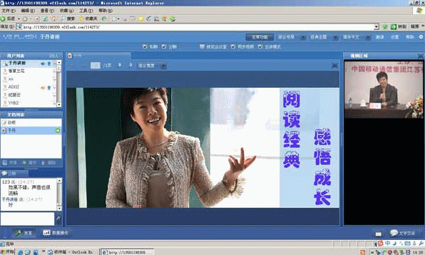 CTI論壇(ctiforum)1月21日消息(記者 張塵):2010年1月14日,江蘇省女性大講堂2010年第一集----于丹“閱讀經(jīng)典,感悟成長”專題講座在中國移動江蘇綜合廳成功舉行。據(jù)悉,《閱讀經(jīng)典 感悟成長》是“全球通VIP名家講堂”聯(lián)手于丹推出的全國大型巡講式講堂,已先后在深圳、上海、蘭州、泉州、武漢、合肥等地進行了講演。截止目前,全球通已成功舉辦“全球通VIP大講堂”25場,參與人數(shù)累計達上萬人次,先后邀請到了李肇星、張召忠、紀連海等專家學者擔任主講嘉賓。