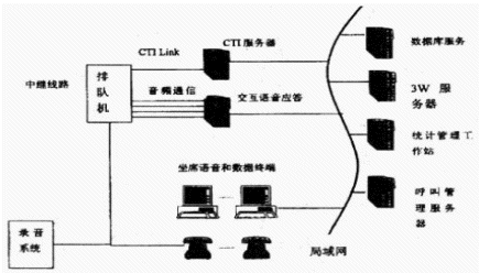 物理上,CTI服務器是一臺與交換機相聯(lián)的計算機,通過接收來自交換機的事件/狀態(tài)消息和向交換機發(fā)送命令,實現(xiàn)計算機對整個呼叫中心的全面管理。CTI服務器一般由電話服務單元、安全數(shù)據(jù)庫和電話服務庫等組成。它屏蔽了交換機與計算機之間復雜的通信協(xié)議,向上提供統(tǒng)一的編程接口,使開發(fā)人員能夠方便地開發(fā)呼叫中心的各類應用。