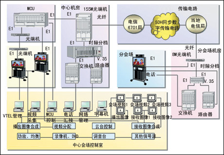 電路可靠。全網(wǎng)電路中沒有其它網(wǎng)絡(luò)設(shè)備,高院主會場由光端機直接使用E1接口與MCU連接,分會場由光調(diào)制解調(diào)器E1口直接與會議終端相接,電路非常簡捷。全程使用光纜傳輸,中間不用任何復(fù)用或轉(zhuǎn)換設(shè)備,不僅電路可靠而且對網(wǎng)絡(luò)故障判斷、維護(hù)顯得異常簡單。
