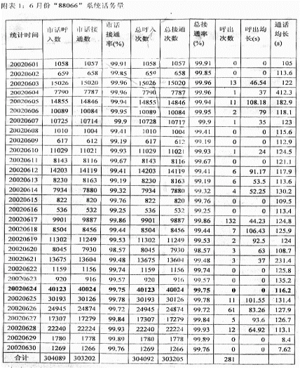 系統(tǒng)在2002年6月份的系統(tǒng)話務(wù)量情況見附表1。