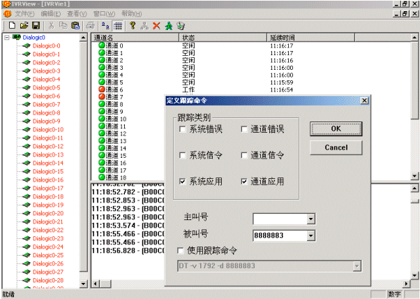 ICANS平臺(tái)提供監(jiān)控模塊,用于控制ICANS平臺(tái)的啟動(dòng)和監(jiān)視平臺(tái)的工作狀況,以及連入其他應(yīng)用模塊。該平臺(tái)可以以圖表方式全屏顯示所有線路狀態(tài)(空閑/撥號(hào)/語(yǔ)音/傳真)及訪問(wèn)總次數(shù),詳細(xì)反映每條線路、每個(gè)任務(wù)的實(shí)時(shí)運(yùn)行情況,便于用戶(hù)及時(shí)掌握系統(tǒng)的運(yùn)行情況。