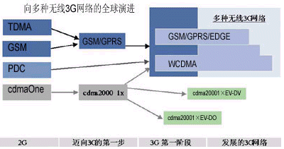 移動多媒體服務(wù)需要網(wǎng)絡(luò)具有更高的速度和更大的容量。蘇敏芬詳細(xì)描述了網(wǎng)絡(luò)由2G向3G演進(jìn)的過程(如圖1)。據(jù)介紹,2G的技術(shù)基于多種標(biāo)準(zhǔn),包括TDMA、GSM、PDC和cdmaOne。其中,TDMA是美國采用最廣泛的2G技術(shù),但現(xiàn)在,美國的運營商已經(jīng)越來越多地開始采用GSMc以及GPRS、EDGE等基于GSM的技術(shù);GSM存在于全球70%的運營商網(wǎng)絡(luò),這種全球化技術(shù)不僅能夠給最終用戶提供服務(wù)、漫游以及通信質(zhì)量方面的很多好處,它還可以節(jié)省運營商的投資,在從GSM向WCDMA演進(jìn)的過程中,也會為運營商帶來諸多裨益。PDC是在日本被廣泛采用的一種技術(shù)標(biāo)準(zhǔn),但現(xiàn)在,WCDMA技術(shù)也正在逐漸被日本運營商采用。cdmaOne(即IS-95)在韓國得到了比較多的應(yīng)用,韓國的運營商面臨兩條發(fā)展道路,即從cdmaOne向WCDMA發(fā)展或向CDMA2000發(fā)展。中國主要采用GSM技術(shù),但也有小部分網(wǎng)絡(luò)采用了cdmaOne技術(shù)。
