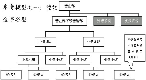 此五種模式建立在營業(yè)部基礎(chǔ)上,在券商總部,建議設(shè)立垂直的業(yè)務(wù)管理機(jī)構(gòu),即經(jīng)紀(jì)業(yè)務(wù)總部實行事業(yè)部制,下設(shè)分工專業(yè)的市場營銷部、客戶服務(wù)部、經(jīng)紀(jì)人訓(xùn)練部和綜合管理部等。