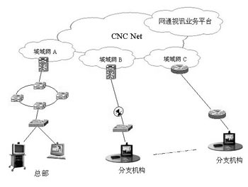 網(wǎng)通視訊業(yè)務(wù)作為應(yīng)用層的服務(wù),可以通過客戶的分支機構(gòu)之間由MPLS VPN組成的專網(wǎng)來承載視頻通信,或者通過接入網(wǎng)通的視頻VPN來使用視頻通信服務(wù)。