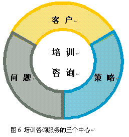 當(dāng)然,提升效果對(duì)于培訓(xùn)咨詢服務(wù)提供商來(lái)說(shuō)是一個(gè)很高的要求,不但要有專業(yè)運(yùn)營(yíng)經(jīng)驗(yàn)和精深的行業(yè)知識(shí),還需要從"以問(wèn)題為中心"的思路過(guò)渡到關(guān)注"問(wèn)題、客戶、策略"三個(gè)中心(如圖6 所示)。