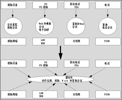 典型的大企業(yè),其電話會議,視頻會議以及網絡與數據會議通常是相互獨立的系統(tǒng)。UCC可以實現(xiàn)各種通信平臺的協(xié)同工作,員工只需使用一個通用界面便可調用多種終端設備。它將視頻會議、音頻會議、短消息以及網絡接入結合在一起。還能結合IP電話功能,如狀態(tài)信息功能等。本專題專門介紹了業(yè)界較為成功的幾種融合視頻概念和產品。