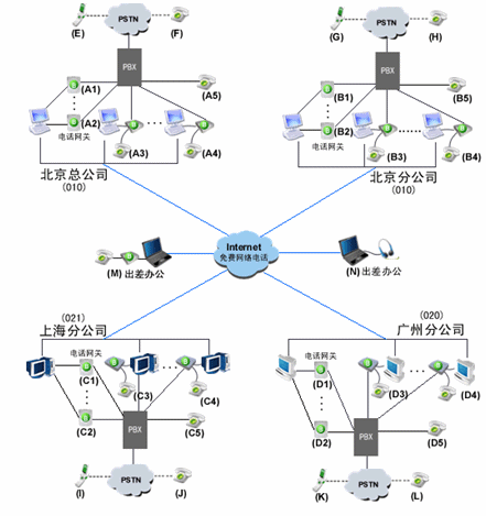 由玻瑞器客戶端和電話網關組成企業(yè)軟交換系統